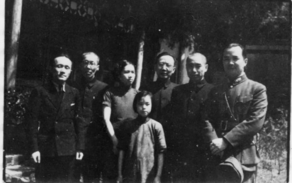 1938年4月1日,国民政府军事委员会政治部第三厅正式成立,郭沫若任厅长。图为郭沫若(右3)与政治部副部长周恩来(右2)、黄琪翔(右1)及杜国庠(左2)等人的合影。