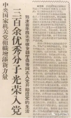 1958年12月27日《人民日报》刊载郭沫若入党的消息